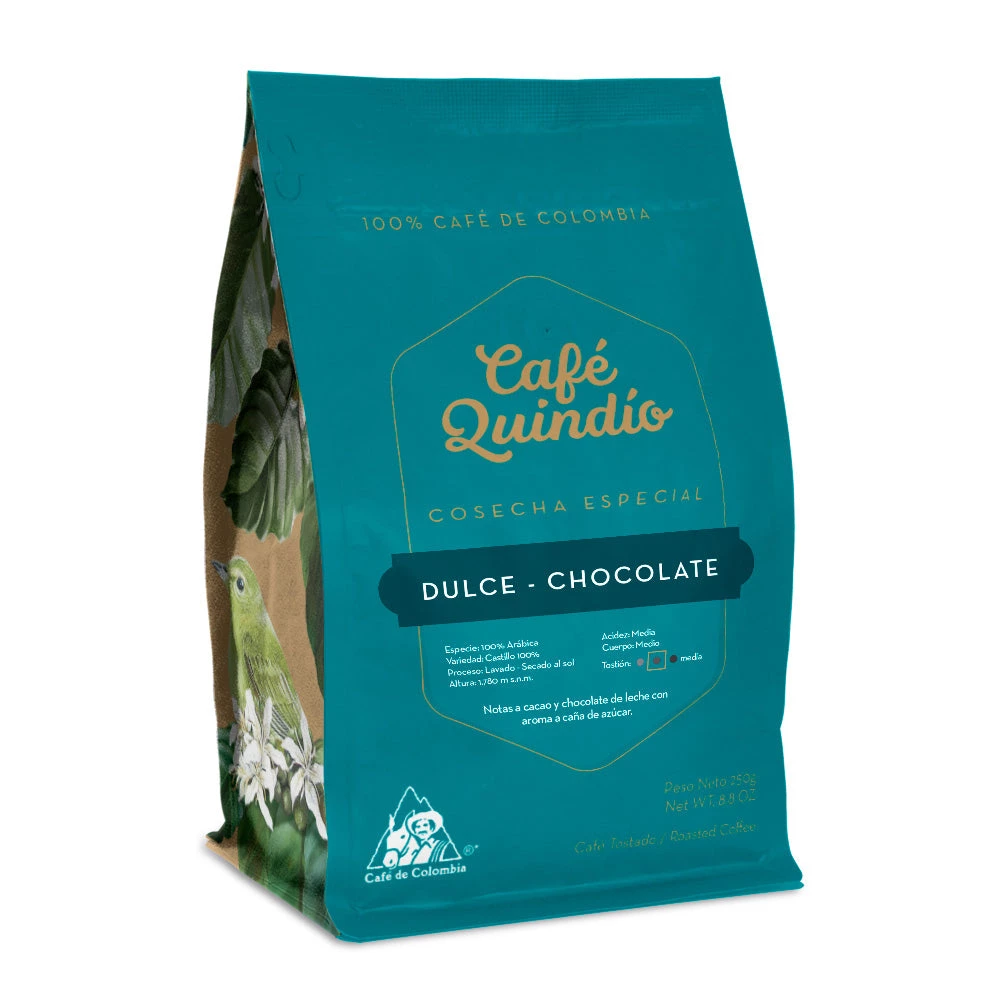 Café Quindío Specialty Harvest Sweet Chocolate Ground Coffee: Smooth and balanced cup characterised by sweet flavours of chocolate and panela.