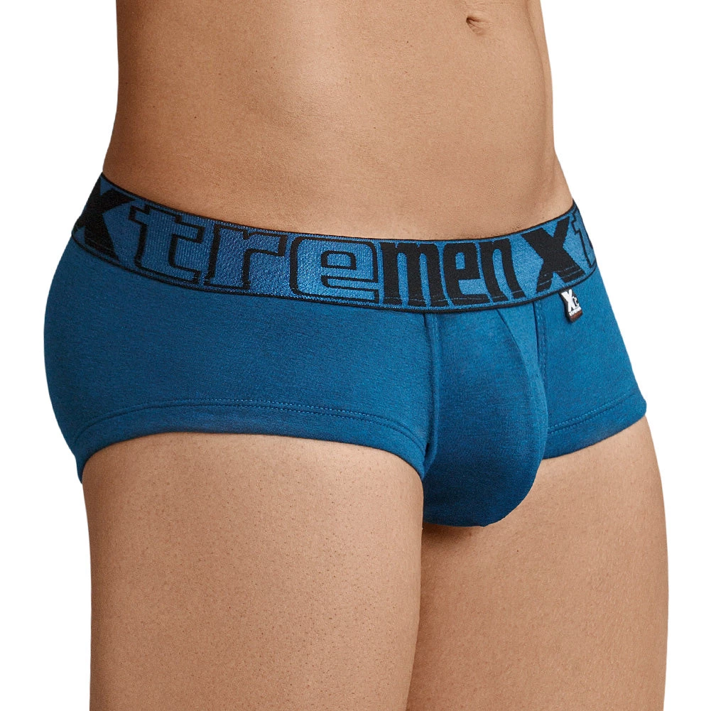 Dusky petrol blue brief with a petrol blue elastic waist band stitched with the Xtremen brand name in black. Material Composition: 95% Cotton, 5% Elastane.